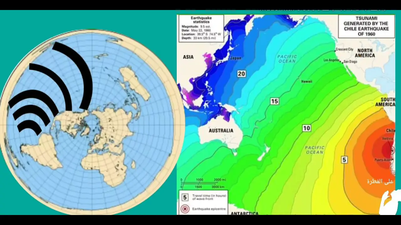 تاريخ الزلازل واتجاه التسونامي هل يشرح مواقع الدول على خريطة الارض الكرويه والمنبسطة. مناطق حزام النار هل هي ابواب الجحيم على السبع الأراضي في الأرض المنبسطة. هل تاريخ التسونامي يثبت ان الأرض كرة